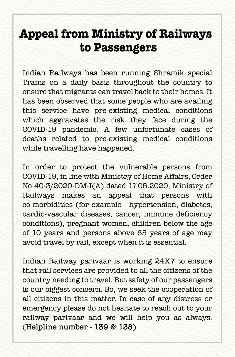Appeal from Ministry of Railways to Passengers|