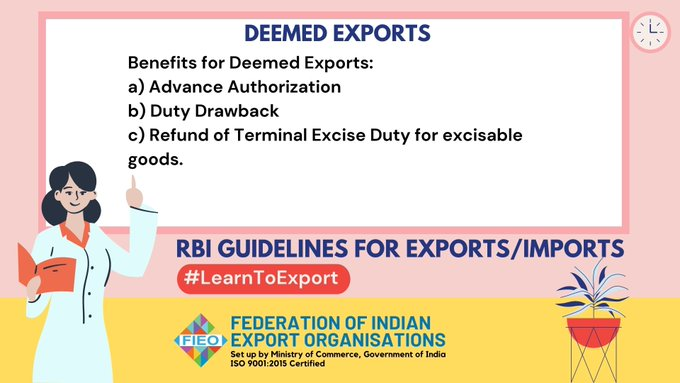 | Export Literacy | RBI | Guidelines | Exports | Imports | Financial | EOU | EHTP | STP | BTP | Letter of credit | Scheme | Credit | Deemed | advance authorization | duty draw back | Terminal excise duty