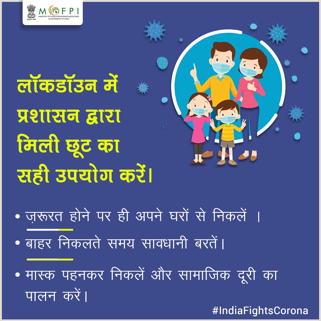प्रशासन द्वारा लॉकडाउन में मिलने वाली रियायतों का सही उपयोग करें। जब तक बहुत जरूरी न हो तब तक अपने घरों में ही रहें एवम् बाहर निकलने पर सही सावधानियां बरतें।