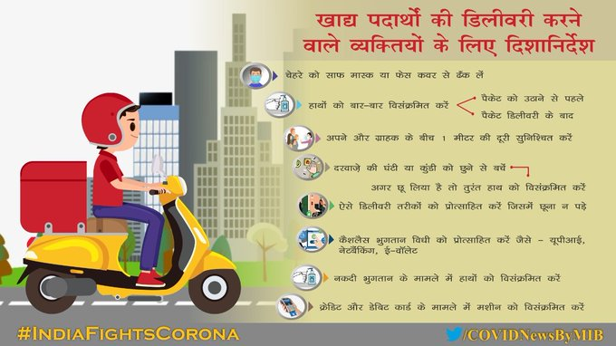 खाद्य पदार्थों की डिलीवरी करने वाले व्यक्तियों के लिए #COVID19 के संक्रमण से बचने के लिए दिशानिर्देश।