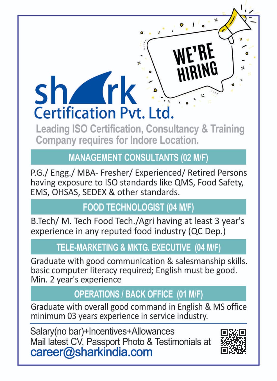 Leading ISO Certification, Consultancy, Training Company hiring for Indore Location